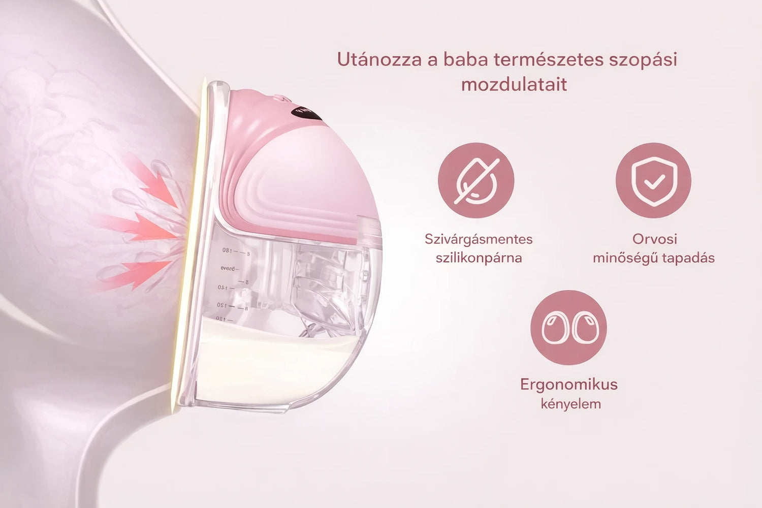 A Flowly hordozható kialakításának köszönhetően melltartóban viselhető, így nem köt helyhez. Használat közben is szabadon mozoghatsz, pihenhetsz vagy a babáddal lehetsz, miközben a készülék csendesen végzi a dolgát.
